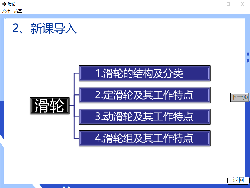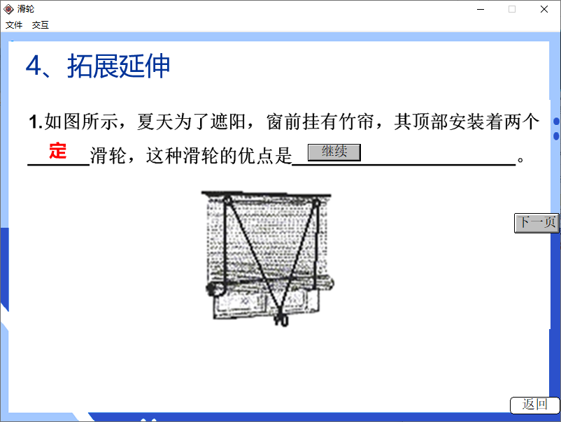 Authorware制作,aw源码《简单机械-滑轮》,初中物理课件。内容丰富,有图、文、音、视频、动画等多媒体,丰富的图标应用,标题带有动画演示。