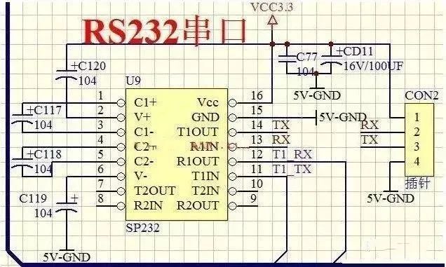 ▲ 图1.3.2 RS-232通过电平转换芯片与MCU通讯