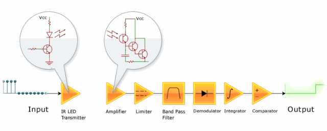 ▲ 图1.4.2 红外信号接收与放大整形电路