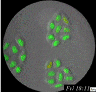细胞从一次分裂到下一次分裂的细胞周期中,会阶段性表达不同种类的蛋白质。即通过基因工程使得体外分裂的Hela细胞在不同的分裂阶段表达带有不同荧光的蛋白,进而指示出细胞处于细胞周期的哪个阶段。