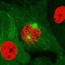 上皮细胞通过有丝分裂可将每条染色体精确复制成两条染色单体并均等分到两个子细胞中,使子细胞含有同母细胞相同的遗传信息。同样,减数分裂也需要纺锤丝和微管的参与,只不过在此过程中,DNA只复制一次而分裂却发生了两次,从而形成遗传物质减半的配子细胞。