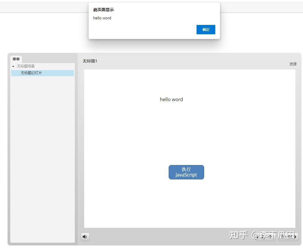 案例2:执行JavaScript,获取幻灯片里的变量值:“hello word”。